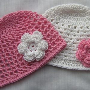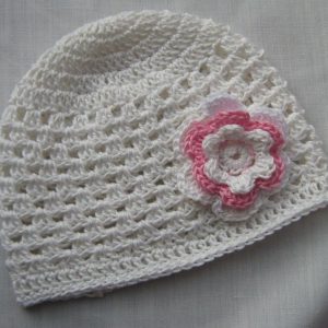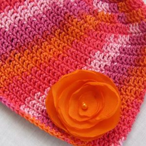 Háčkovaná čepice s aplikací z organzy