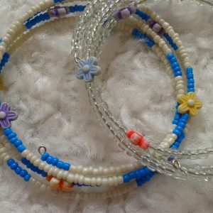 korálky bílé – prokládané korálky se stříbrnou aplikací