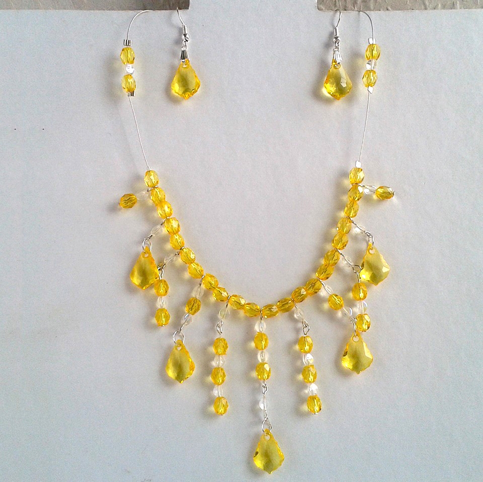 Náušnice : žluté plastové a broušené korálky ve tvaru baroka (nejedná se o Swarovski), které jsou zavěšeny na šlupně a afroháčku stříbrné barvy.