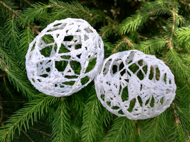 Ozdoby jsou uháčkovány z tenké bavlněné příze zn. Kordonet a silně naškrobeny. Průměr mají cca 6cm. Mohou být s vháčkovaným korálkem. Cena je za jeden kus. Možnost osobního předání.