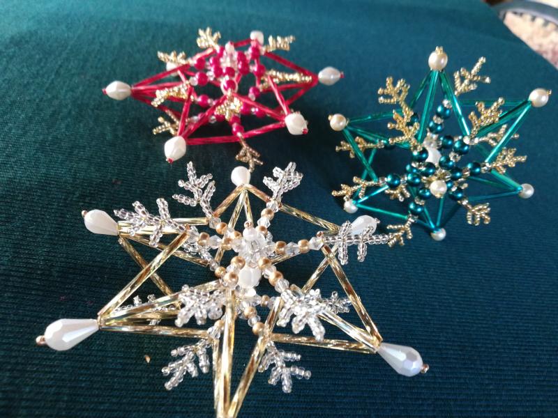 Korálové dvojité hvězdy o průměru cca 9-11cm, záleží na velikosti korálků. Mohou být v klasické vánoční barvě, červená, zlatá, zelená nebo v jiné netypické, modrá, růžová, atd. Možnost osobního předání