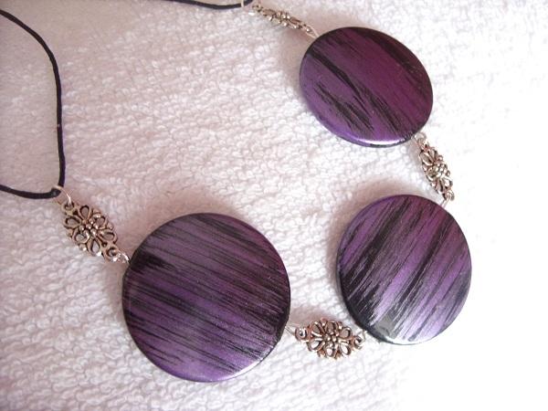 Náhrdelník je vyroben z korálků a přívěsků zavěšených na bavlněných šňůrkách. Zapínání barvy stříbrné, prodlužovací řetízek, komponenty barvy starostříbrné a stříbrné. Délka zapnutého náhrdelníku cca 27-30 cm v závislosti na prodlužovacím řetízku.