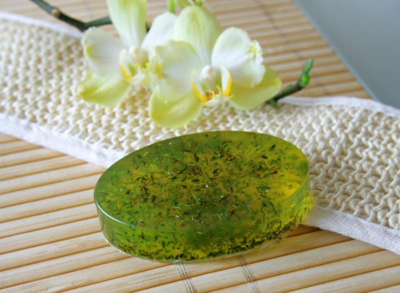 Přírodní ručně vyráběné mýdlo s konopným olejem a přídavkem konopí.