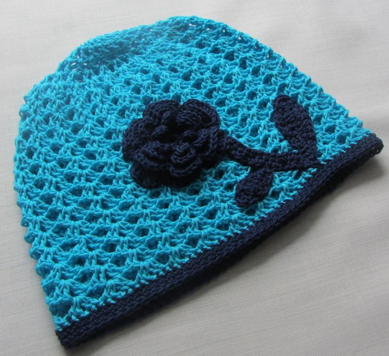 Slušivou letní čepulku ze 100% bavlny s aplikací kytičky.