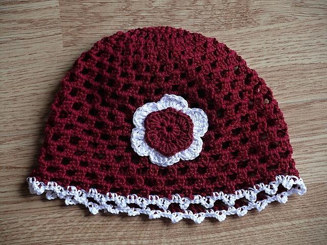Krásná háčkovaná čepička pro malé slečny.Háčkovaná ze 100% bavlny.Vhodná na léto.
