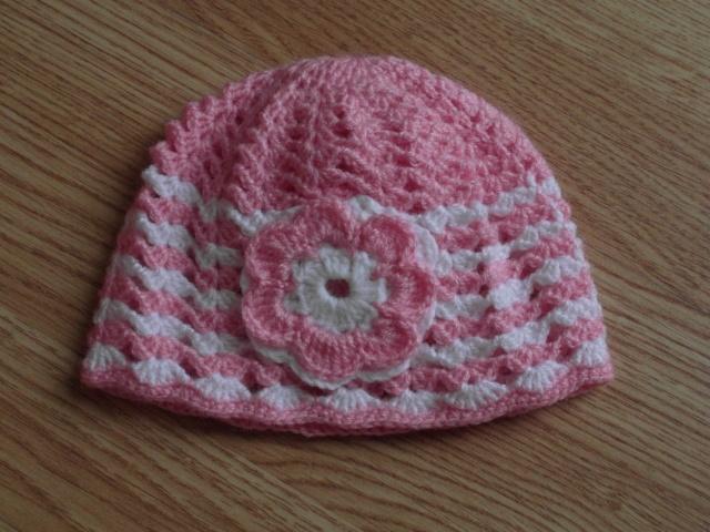 Krásná háčkovaná čepička s kytičkou na straně.Háčkovaná ze 100% akrylu vlna Mája.