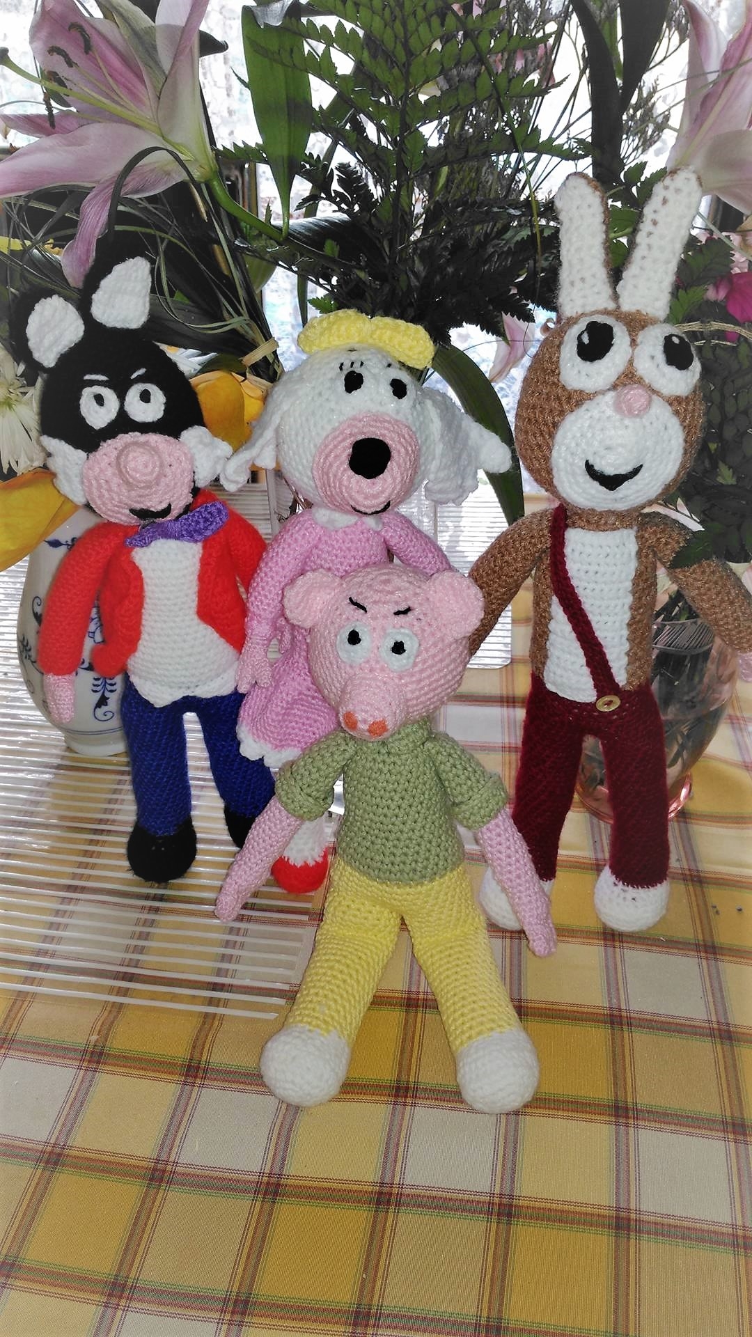 Mnou háčkovaný čtyřlístek. Tedy originál, druhý takový není … Nový, nehraný. Pinďa 38 cm, Myšpulín 35cm, Fifinka 31cm Bobík 33cm Háčkované z kvalitní příze, vhodné i pro miminka.