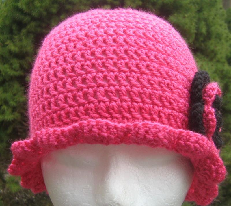 Zářivě růžový klobouček s aplikací květiny. Vyroben ze 100% akrylu. Velikost i barevné provedení lze upravit.