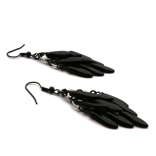 Náušnice jsou tvořeny z uspořádaných černých skleněných korálků do tvaru kosočtverce.