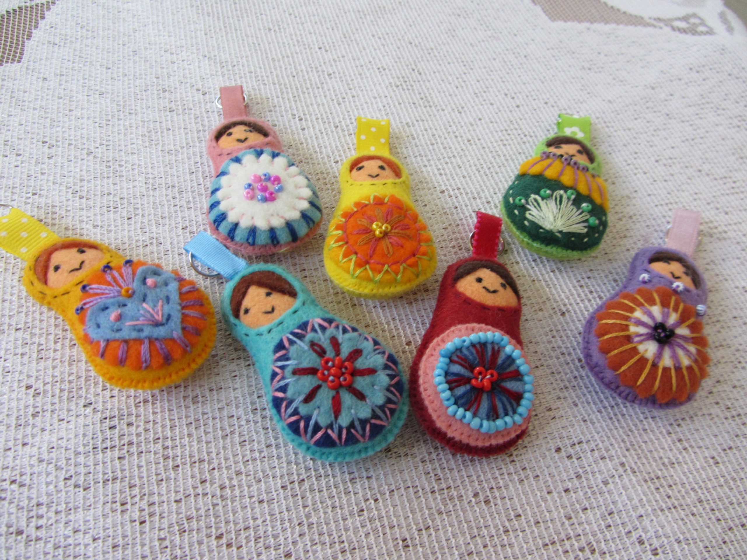 Ručně šitý a vyšívaný plstěný přívěšek na klíče nebo kabelku, bundu atd. Velikost přívěšku je 6 cm.