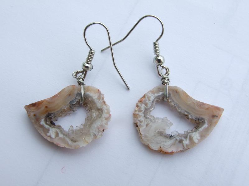 Náušnice jsou z plátků peříčkového achátu, jen zadrátované, takže nic neruší užít si barvy achátu