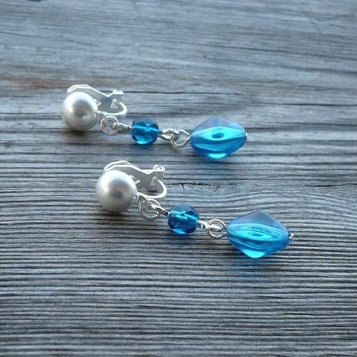 Jednoduché krátké klipsové náušnice (není potřeba mít propíchnutá ouška) jsou tvořeny krásně modrými skleněnými korálky.