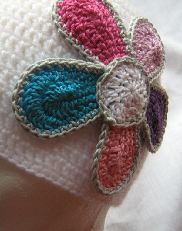 Krásný jarní – letní klobouček ze 100% bavlny s velikou kytkou. Velikost přizpůsobím Vašemu přání.