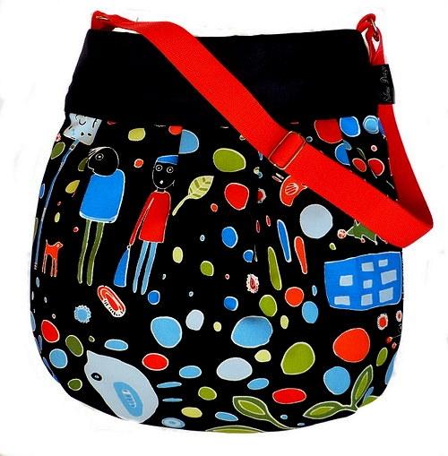 Kabelka z pevné bavlněné látky s barevným vzorem. Krásně drží tvar je celá 2x vyztužená, vypodšívkovaná.