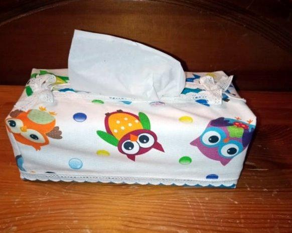 Látkový obal na krabičku s papírovými kapesníky mohu ušít i na přání v různých kombinacích.