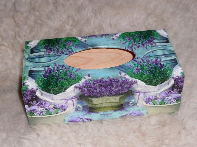 Dřevěná krabička na kapesníky s výsuvným dnem. Rozměr cca 26×13,5×8,5cm. Upravená technikou decoupage a přelakována. Lze otírat vlhkým hadříkem. Použitý motiv se může u jednotlivých kusů mírně lišit.