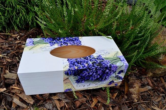 Dřevěná krabička na kapesníky s výsuvným dnem.
