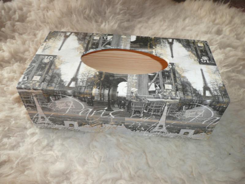 Dřevěná krabička na kapesníky s výsuvným dnem. Rozměr cca 26×13,5×8,5cm. Upravená technikou decoupage a přelakována. Lze otírat vlhkým hadříkem. Použitý motiv se může u jednotlivých kusů mírně lišit.