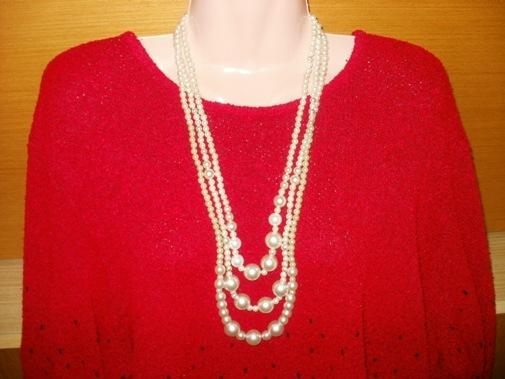Nabízím krásný trojřady perlový a perličkový náhrdelník z bižuterie. Náhrdelník si můžete vzít do společnosti, ale i pro běžné nošení. Je vyroben z perel a perliček různých velikostí. Má zápínání na karabinku.