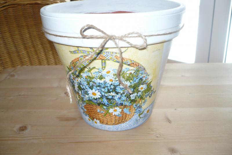 Keramický květináč ozdoben ubrouskovou technikou. Nádherná dekorace. veliké možnosti využití.