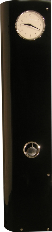 Moderní podlahové hodiny, od české firmy „Dědečkovy hodiny,“ osazené německým strojem Hermle. Provedení hodin – plast, ohnutý za tepla, barva černá. Hodiny sloužítaké jako odkládací prostor pro šaty, zavěšené na ramínko. Jsou vevnitř zesílené nerezovým držákem, na který se ramínko zavěsí. Stroj elektrický, tichý ze zesíleným chodem kyvadla, ciferník bílý, niklovaný, s vypouklým sklem.