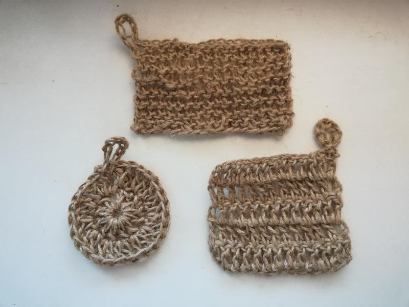 Háčkovaná nebo pletená masážní eko žíňka 13x11cm, příp. o průměru cca 11cm. Lze použít i jako houbička na nádobí. Možnost praní. Cena je za jeden kus