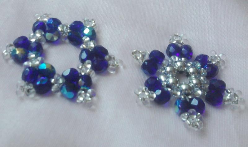 Ručně vyráběné vánoční ozdoby ze skleněných korálků. Barva stříbrná a modrá s lesky (ohňovky). Po dohodě lze zhotovit i v jiné barvě. V balení je 6 kusů hvězd a k dodávce jsou přibaleny i háčky na zavěšení. Velikost: 6 cm