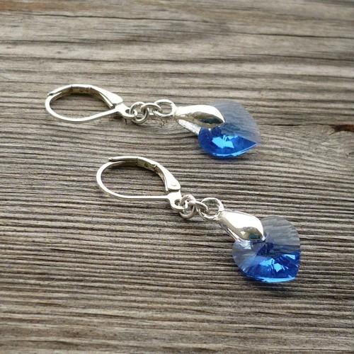 Lehoučké náušnice jsou vytvořeny z prvotřídně vybroušeného Swarovski srdíčka modré barvy a doplněny několika bižuterními komponenty.