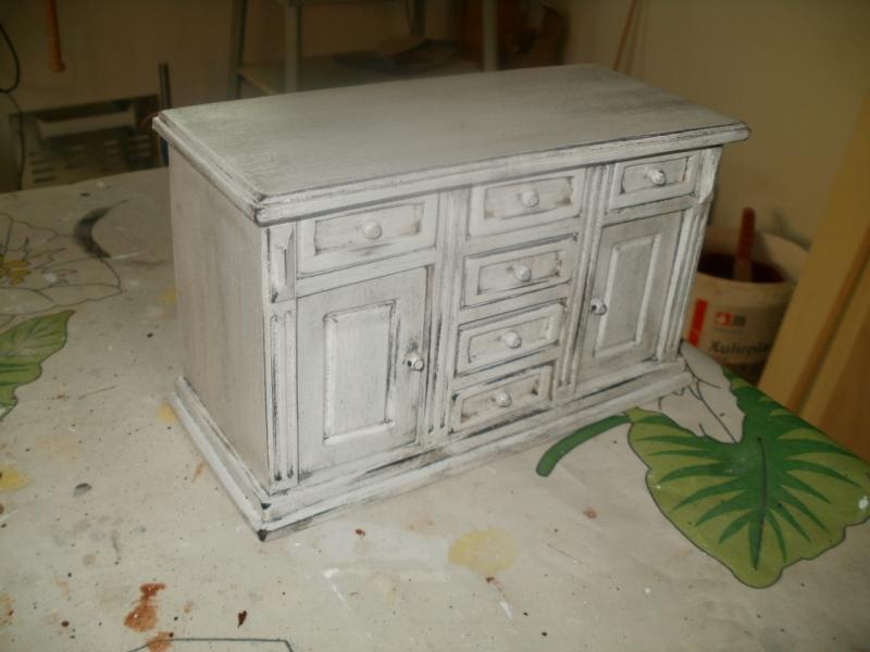 Ručně vyrobená a bíle lakovaná komoda pro panenku Barbie.