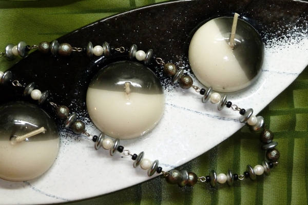 Ketlovaný náhrdelník. Zapínání šroubovací. Délka 43 cm. Materiál voskové perly
