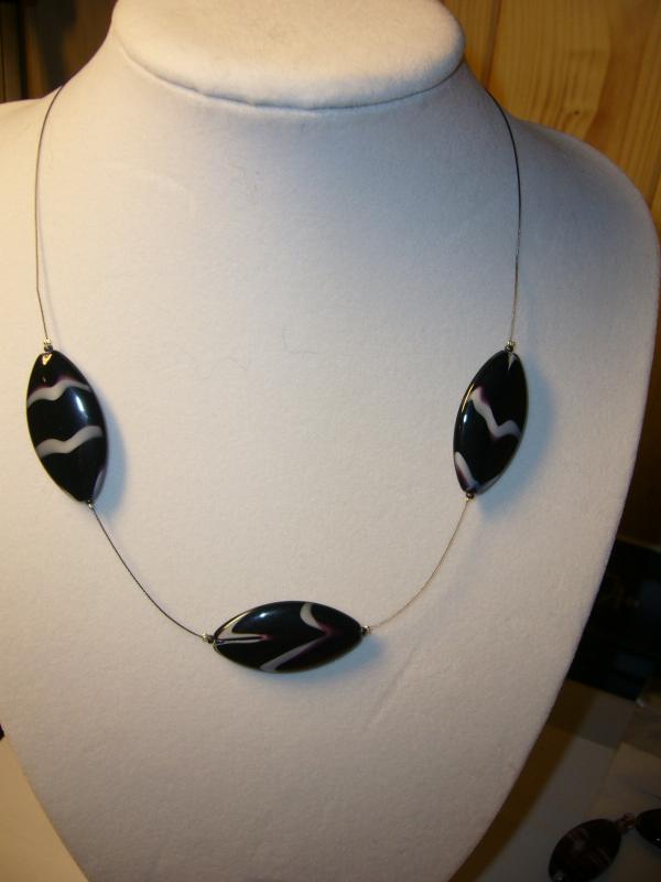 Korálky jsou skleněné. Barva černá s žíháním do bíla.