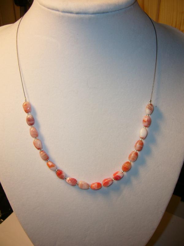 Náhrdelník má korálově červenou barvu s žíháním do bíla