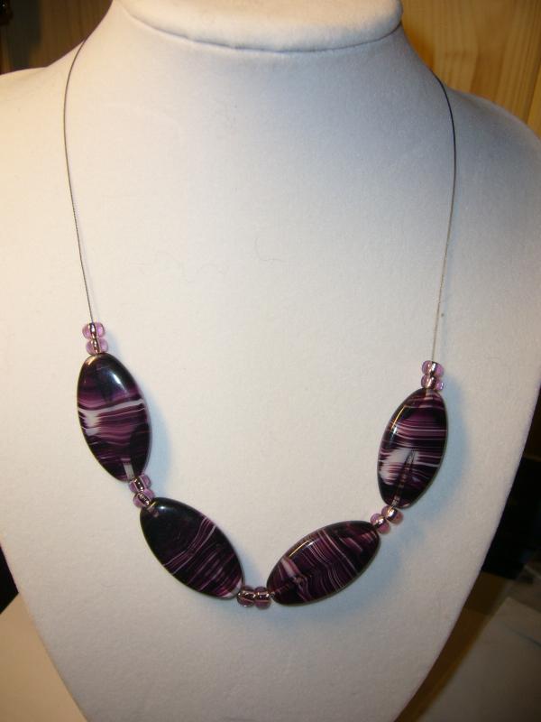 Korálky jsou skleněné fialové barvy – žíhané.