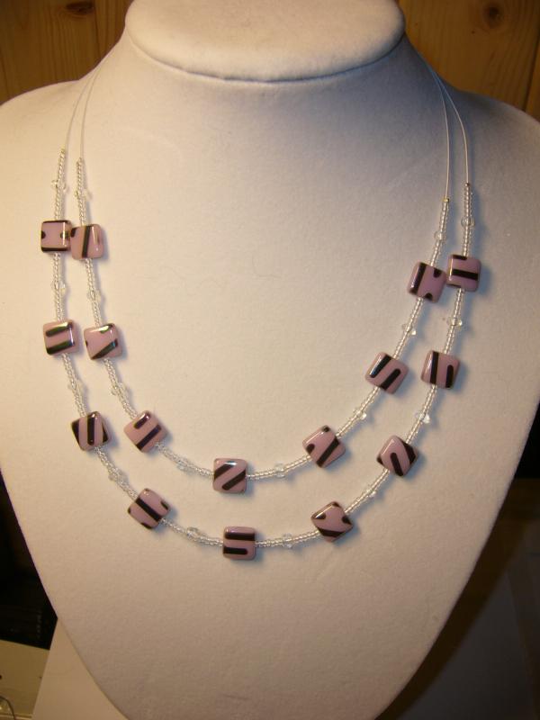 Velikost korálků 1 x 1 cm, světlé fialkové barvy se zdobením.