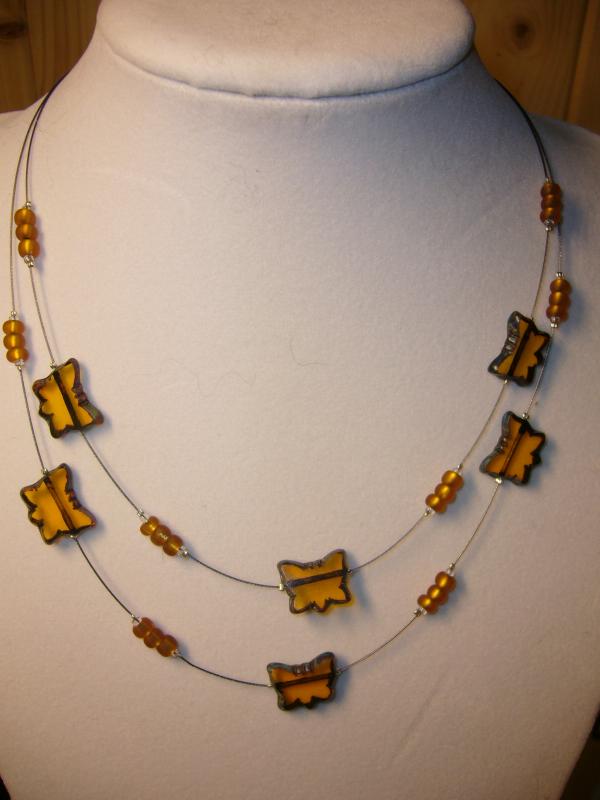 Náhrdelník – s motýlky, barva medová