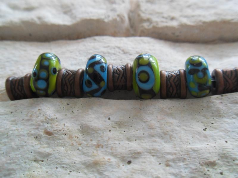 Náhrdelník se čtyřmi vlastnoručně vyrobenými vinutkami, doplněný komponenty z bižuterie. Délka náhrdelníku cca 46 cm.