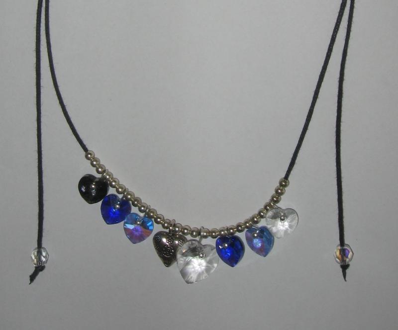 Nabízím nový náhrdelník vyrobený ze 7 kusů swarovského srdíček a jednoho bižuterního srdíčka, 6 srdíček velikosti 10 mm a jedno 14 mm swarovského srdíčko na voskové šňůrce, délku náhrdelníku jednoduše upravíte podle potřeby zatažením za konce šňůrky – stejný typ úpravy velikosti jako u schamballa náramků. Vyroben jen jeden originální kus, stejný další na nikom neuvidíte.