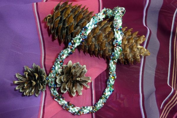 Kumihimo náhrdelník s vyplétanými korálky Zapínání karabinka Délka 48 cm Materiál satén, rokajl