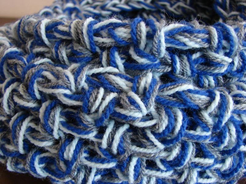 tento ručně háčkovaný nákrčník se nosí 2x omotaný, v případě nepříznivého počasí jej lze přetáhnout přes hlavu jako kapuci 🙂