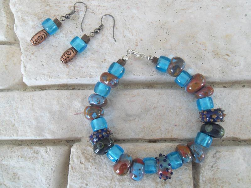 Náramek s 15ti vlastnoručně vyrobenými vinutkami doplněný komponenty a korálky z bižuterie.