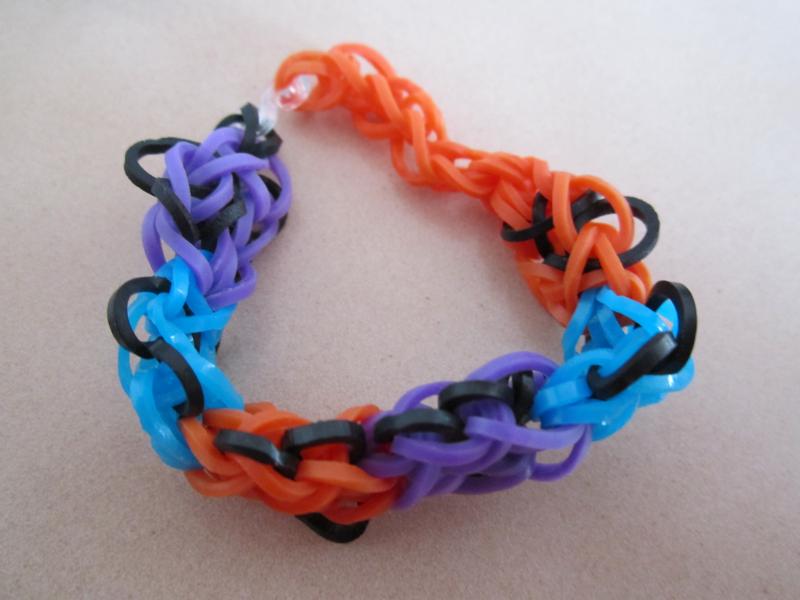 Náramek je vyrobený z gumiček Loom bands v barvách modré, oranžové a fialové. Možnost vyrobit v jakýkoliv barvách 🙂