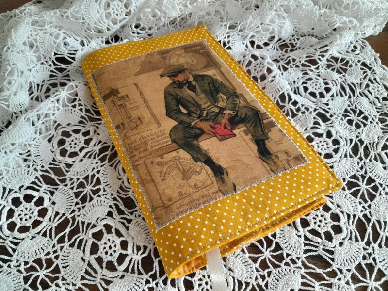 Nabízím nastavitelný obal na knihu, diář,zápisník. Šitý z pískového puntíčku a krásného panelku. Vnitřek je pískový. Vystužený ronofixem.