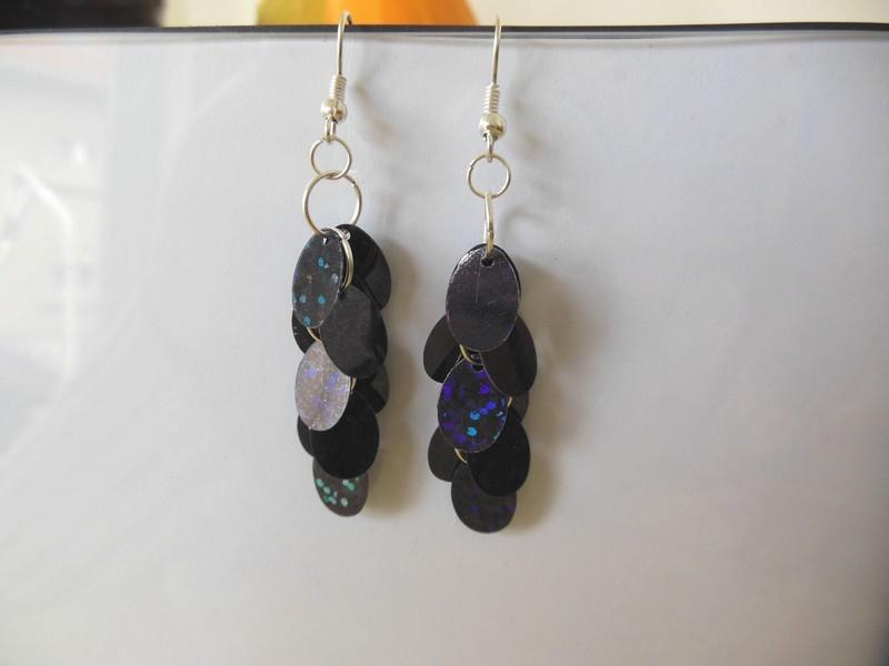 Náušnice – flitry, kroužky, komponenty starostříbro. Délka bez zapínání 5 cm. Jsou lehoučké a hezky chrastí. Dlouhé náušky ideální na večer:-))