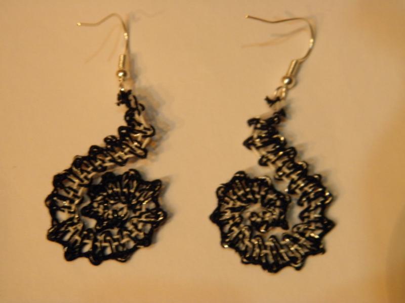 Ručně paličkované náušnice ve tvaru spirálky a barvě černostříbrné. V nabídce mám též celý komplet.