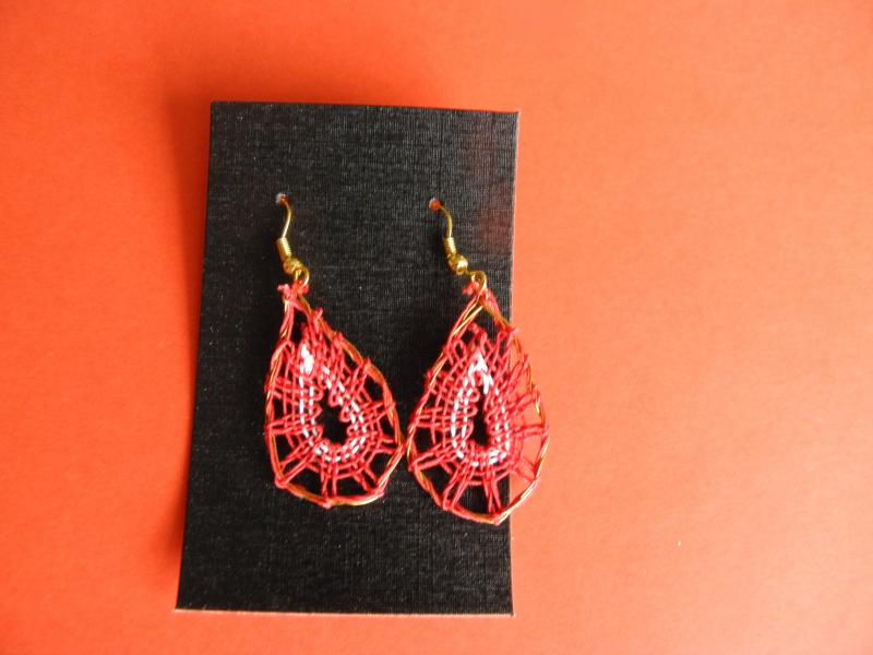 Ručně paličkované náušnice ve tvaru slziček a barvě červenozlaté. Výška náušnice cca 5cm včetně afroháčku. Po obvodu je přidaný drátek z důvodu lepšího udržení tvaru. Po dohodě lze vyrobit také v jiné barevné kombinaci nebo bez drátku.