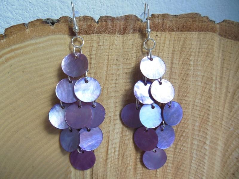Náušnice – perleťové penízky, komponenty starostříbro. Délka bez zapínání 6,5 cm. Jsou lehoučké a hezky chrastí. Ideální k šatům na večer. Velmi elegantní a výrazné.