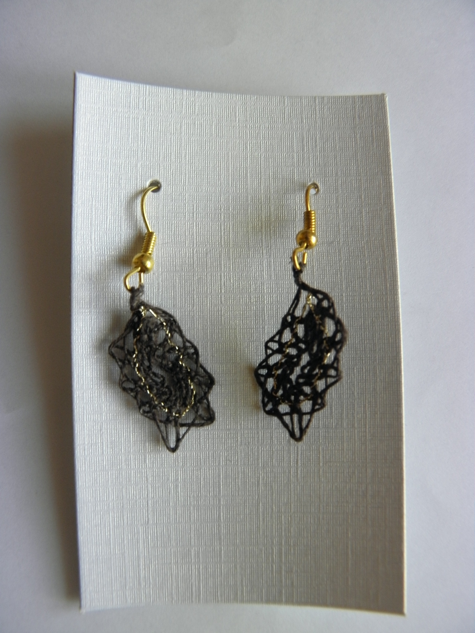 Ručně paličkované náušnice ve tvaru oválu, s použitím hnědé lněné příze a zlaté. Výška 4cm včetně zlatého afroháčku. Možnost zhotovit i v jiné barevné kombinaci.
