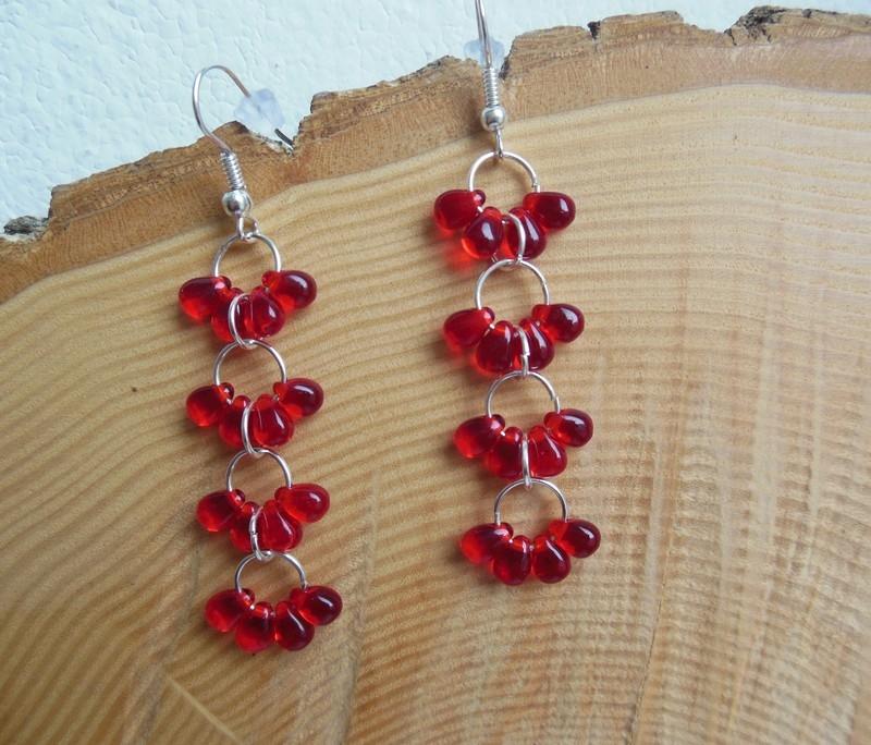 Náušnice – skleněné korálky, kroužky, komponenty starostříbro. Délka bez zapínání 4,5 cm.
