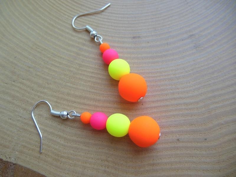 Náušnice –  skleněné neonové korálky, komponenty starostříbro. Délka bez zapínání 3 cm.