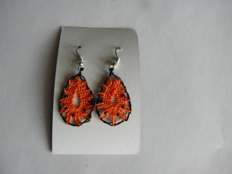 Ručně paličkované naušnice ve tvaru slziček a barvě oranžovočerné s přidanými korálky. Výška náušnice cca 5cm včetně afroháčku. Po dohodě lze vyrobit také v jiné barevné kombinaci.